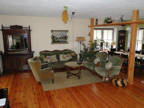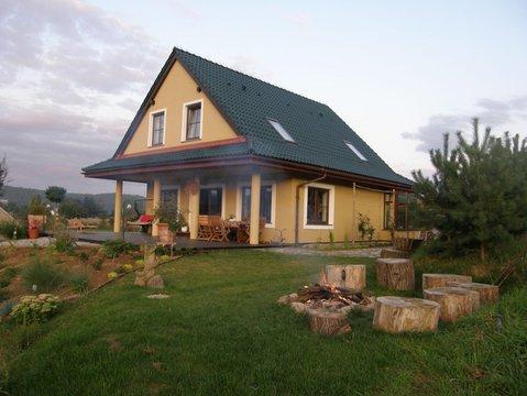 Parter: salon z kominkiem (kino domowe, TV kablówka, DVD), kuchnia z jadalnią - w pełni wyposażona, ogród zimowy, WC, taras z meblami ogrodowymi, leżaki, huśtawka, możliwość słuchania muzyki na zewnątrz (głośniki).