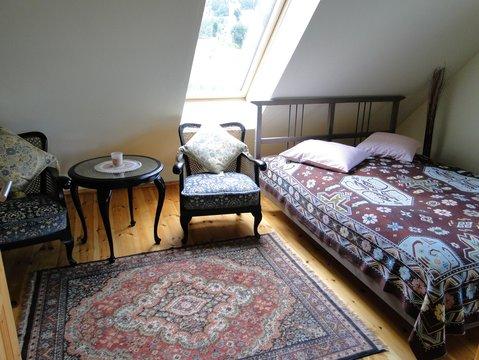 Piętro: 4 pokoje dwuosobowe, łazienka.