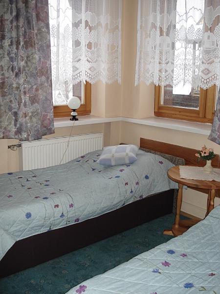 Dom dysponuje 20 miejscami noclegowymi w pokojach 1, 2, 3, 4-osobowych, wygodnych i funkcjonalnych z integralnym, cyfowo dozowanym, centralnym ogrzewaniem. W każdym pokoju do dyspozycji telewizor oraz radio. Pokoje z łazienkami. Do dyspozycji wczasowiczów jest kuchnia wyposażona w naczynia, zamykane miejsce chłodnicze (osobno dla każdego pokoju) i sprzęt kuchenny, gdzie można przygotować śniadania i kolacje. Obok kuchni znajduje się świetlica (jadalnia z telewizją satelitarną) i barek z kominkiem.