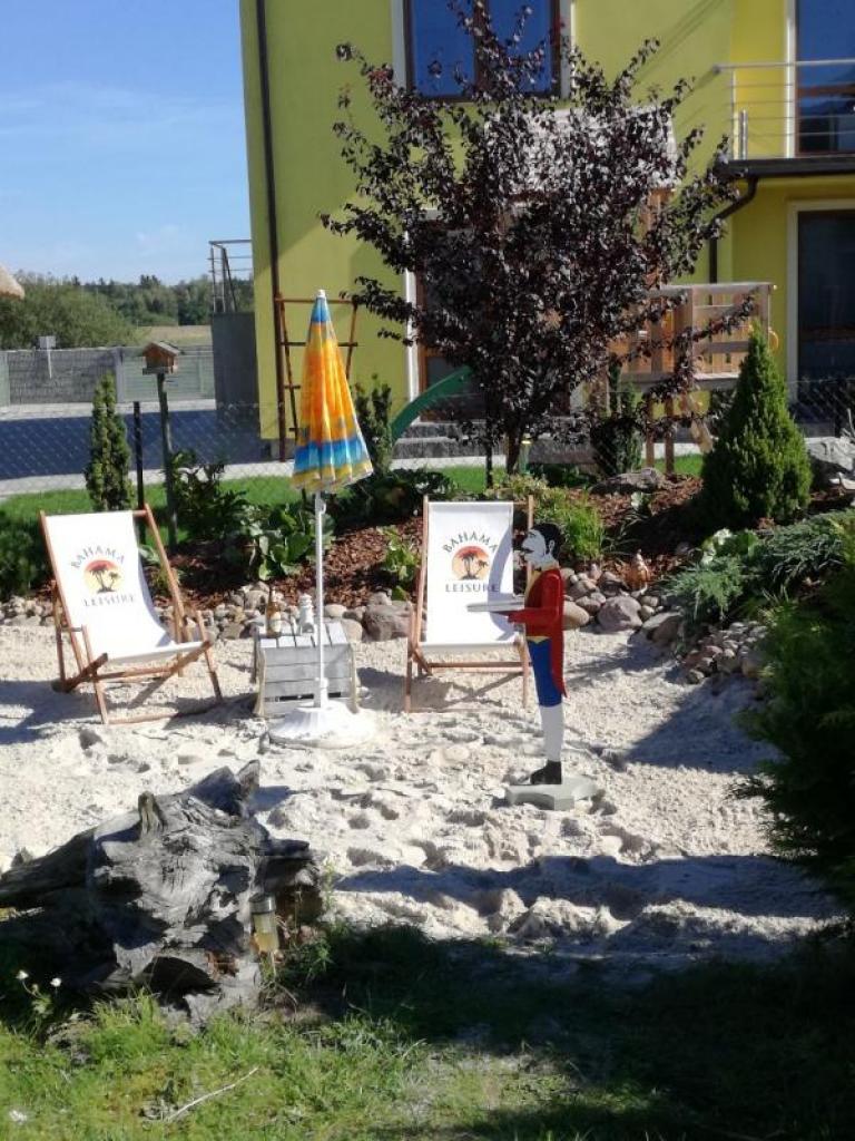 Do dyspozycji Gości jest również duża wyposażona kuchnia wraz z jadalnią oraz taras ze stołem. Na 2 piętrze znajduje się aneks kuchenny wraz z niezbędnymi sprzętami agd. Goście mogą również skorzystać z pralki i deski do prasowania. Na ogrodzie altanka oraz grill co sprzyja wieczornym spotkaniom, natomiast dla dzieci mini plaża z morskim piaskiem oraz drewniana huśtawka. Z przodu znajdują się miejsca parkingowa. Cała posesja się ogrodzona. Dla gości lubiących ruch mamy do dyspozycji rowery, które można wypożyczyć za drobną opłatą.